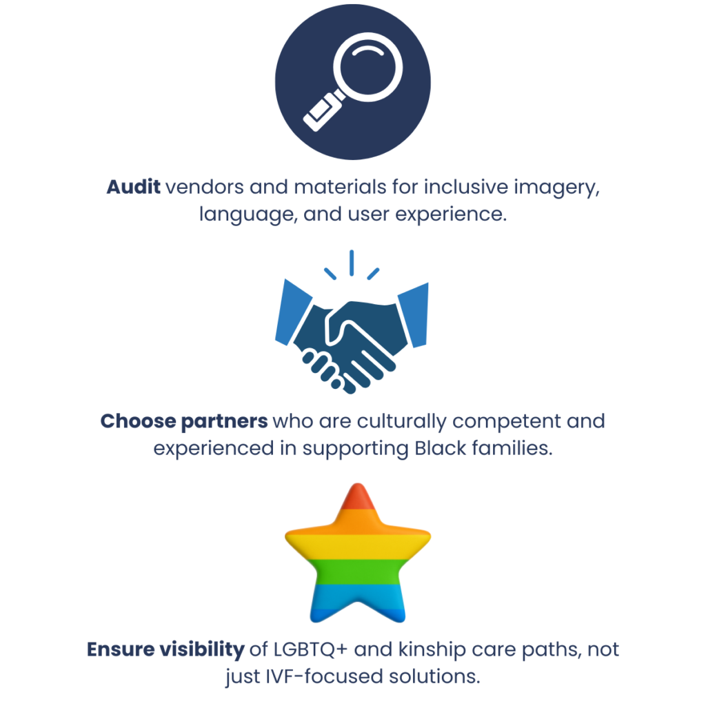 And just as important: If your benefits are buried in fine print or hidden in IVF-only portals, they’re not accessible. Visibility is equity.